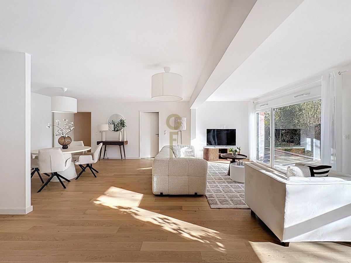 L’entrée s’ouvre sur un couloir spacieux de 9 m², menant à une pièce de vie baignée de lumière de 54 m², où salon, salle à manger et cuisine se prolongent naturellement vers une terrasse généreuse de 60 m² et un jardin privatif de 230 m² exposé sud-ouest, écrin de verdure bercé par le soleil