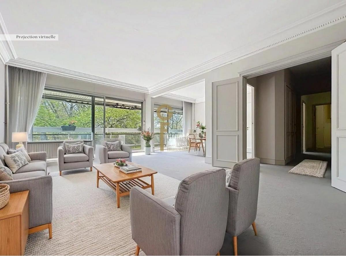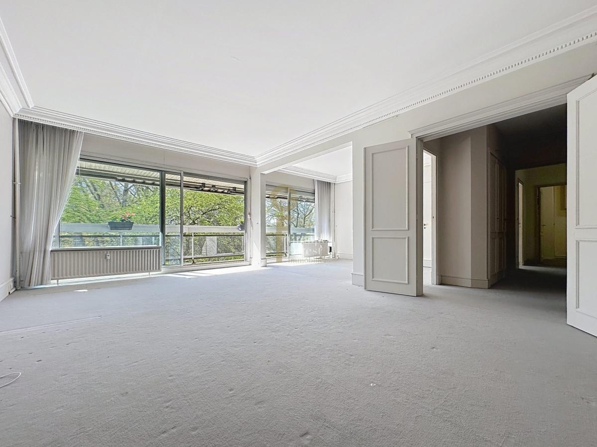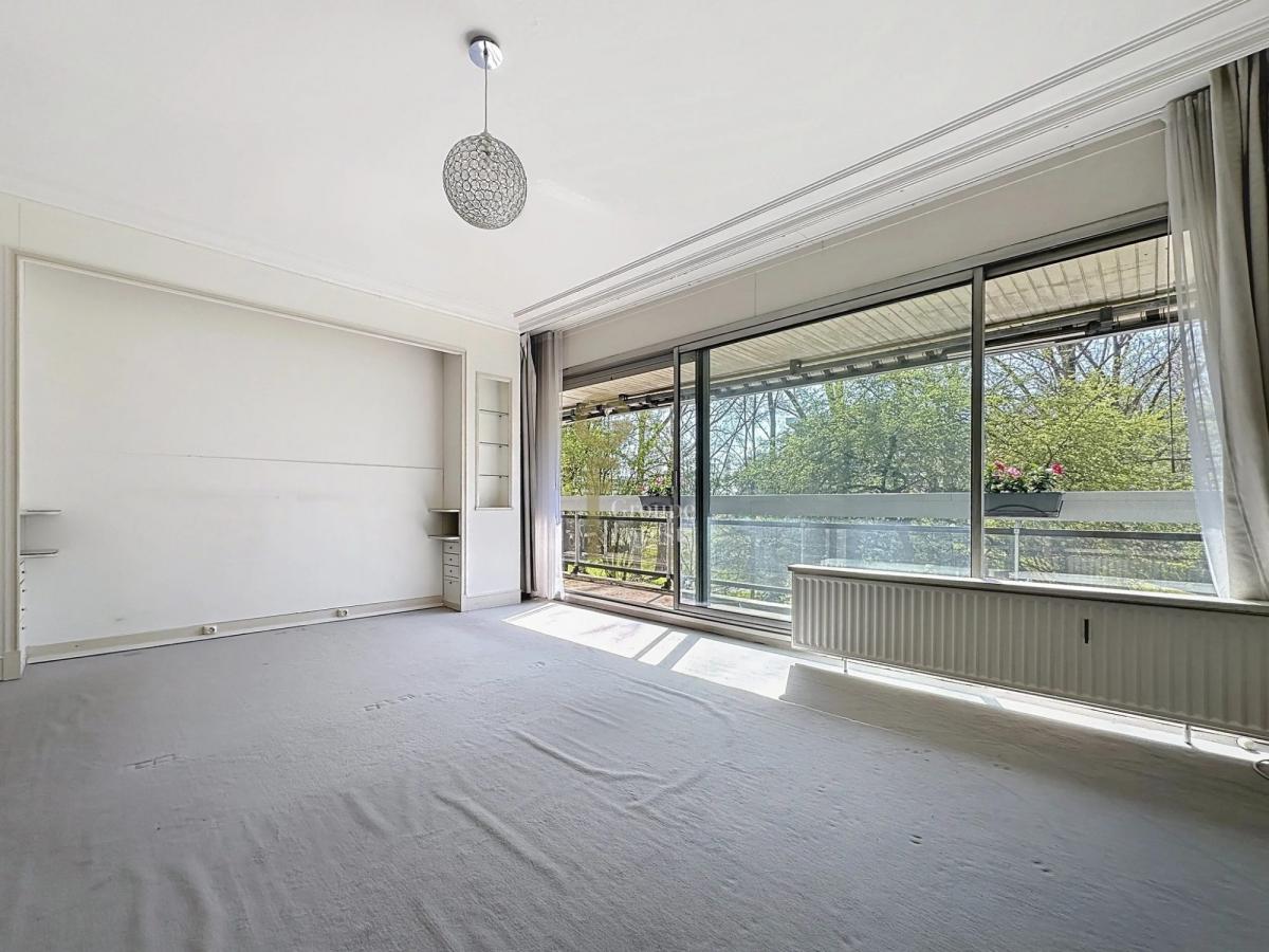 Une belle entrée qui dessert un grand séjour de 39 m2 ultra lumineux orienté sud ouest donnant sur un immense balcon et sur la verdure, deux kitchenettes, deux grandes chambres 21 et 27 m2. De nombreux placards.