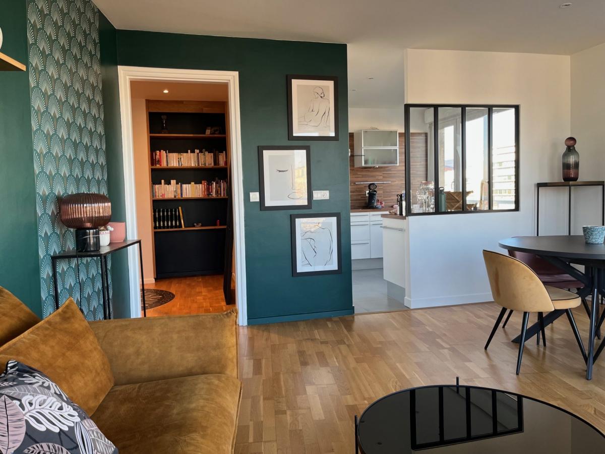 Situé au 6 eme étage, vue a 180°. Appartement coup de coeur, deco tendance.