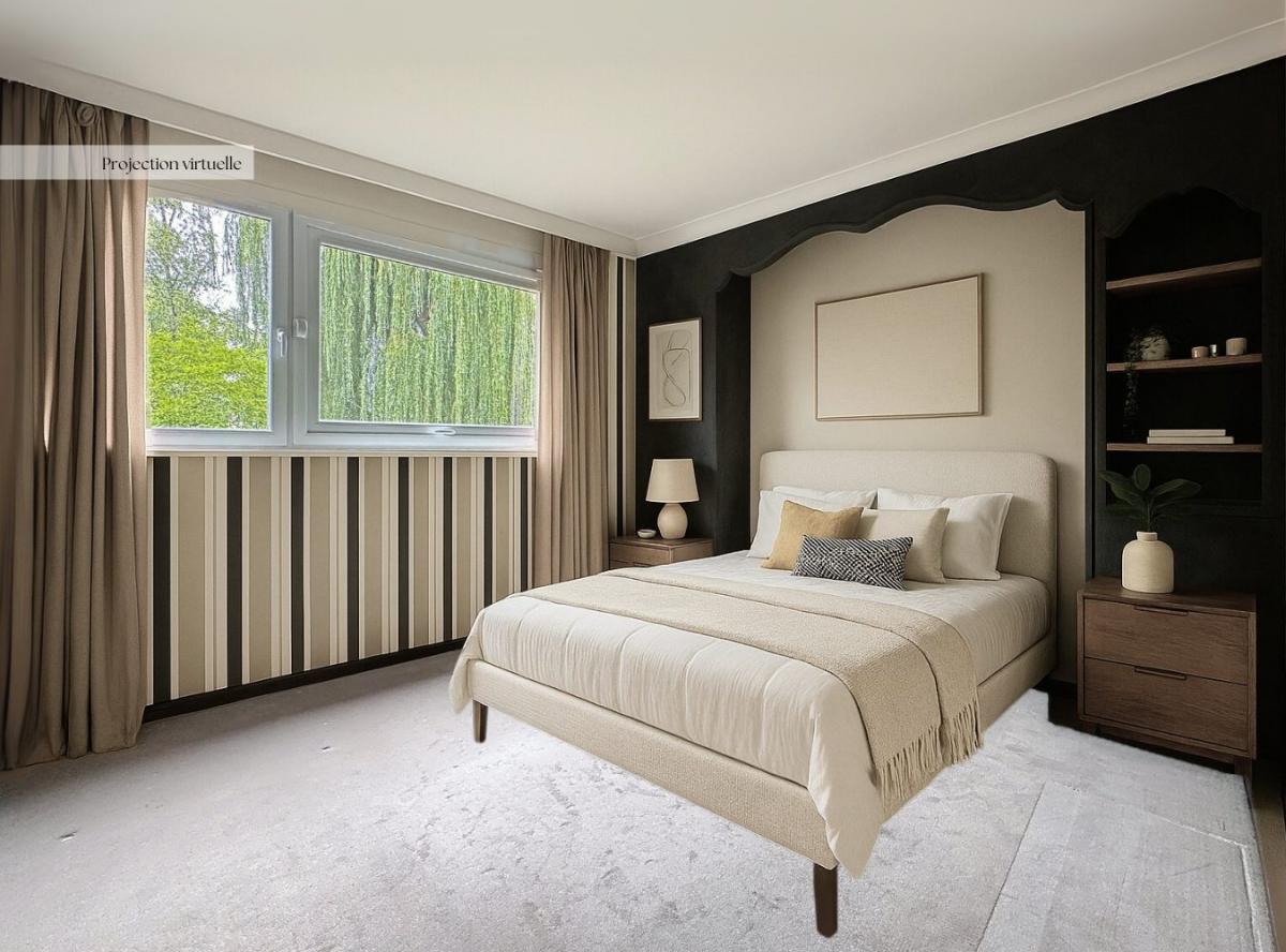 Un coin nuit dessert 3 chambres dont 2 vue jardin et une avec lavabo et placards aménagés, une salle de douche avec 2 vasques et WC, une autre chambre de service ou bureau au 4 eme étage.