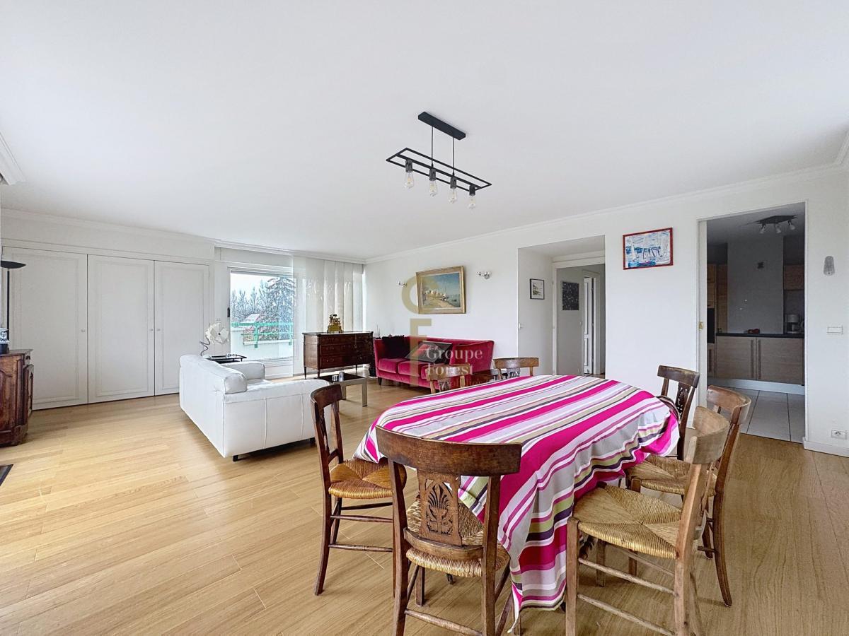 À deux pas du centre ville, très bel appartement d'environ 110m2 baigné de lumière vous proposant, une entrée avec son vestiaire et wc, un espace cellier, un vaste salon séjour ensoleillé d'environ 40m2, une cuisine équipée, un espace parents avec sa salle de bains et un wc, une chambre avec des placards et une salle de douche.