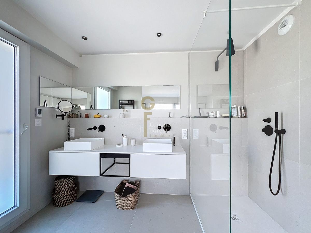 Côté jour : C'est l'espace de vie, baigné de lumière, sublimé par de larges ouvertures donnant sur la magnifique terrasse. La cuisine, entièrement équipée, s’accompagne d’un cellier/buanderie pour un confort absolu.