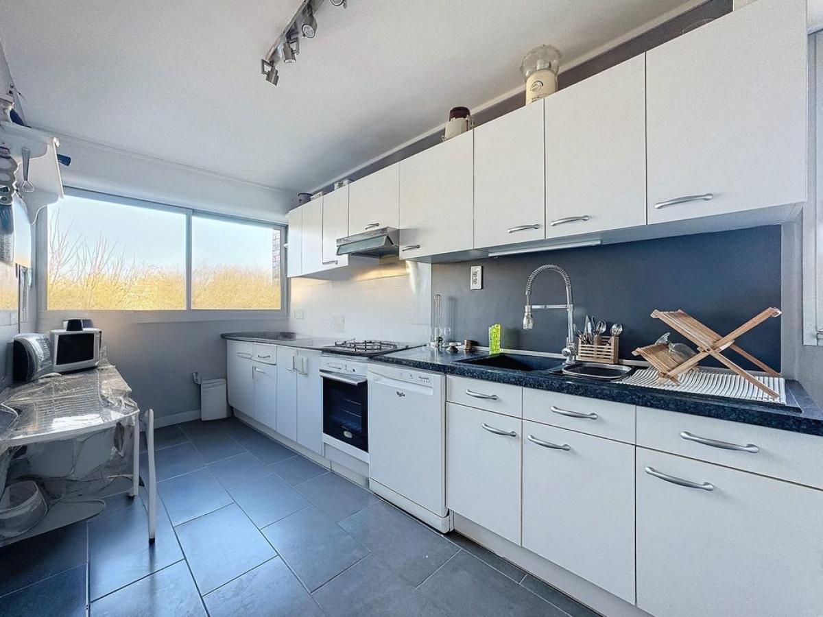 Celui-ci est composé d'une belle entrée desservant un grand séjour de plus de 32m2 donnant sur une grande terrasse de presque 40m2, une salle à manger donnant directement sur une cuisine fermée et équipée.