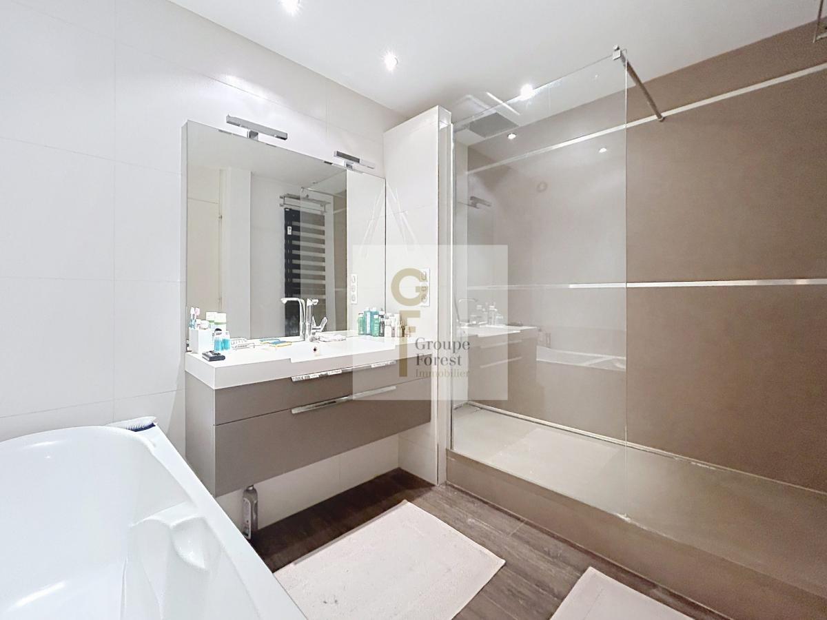 L’espace nuit comprend deux chambres, chacune équipée de rangements intégrés, permettant une utilisation optimale des volumes.Vous trouverez également une salle de bain avec douche à l’italienne, ainsi qu’un WC indépendant et une buanderie.