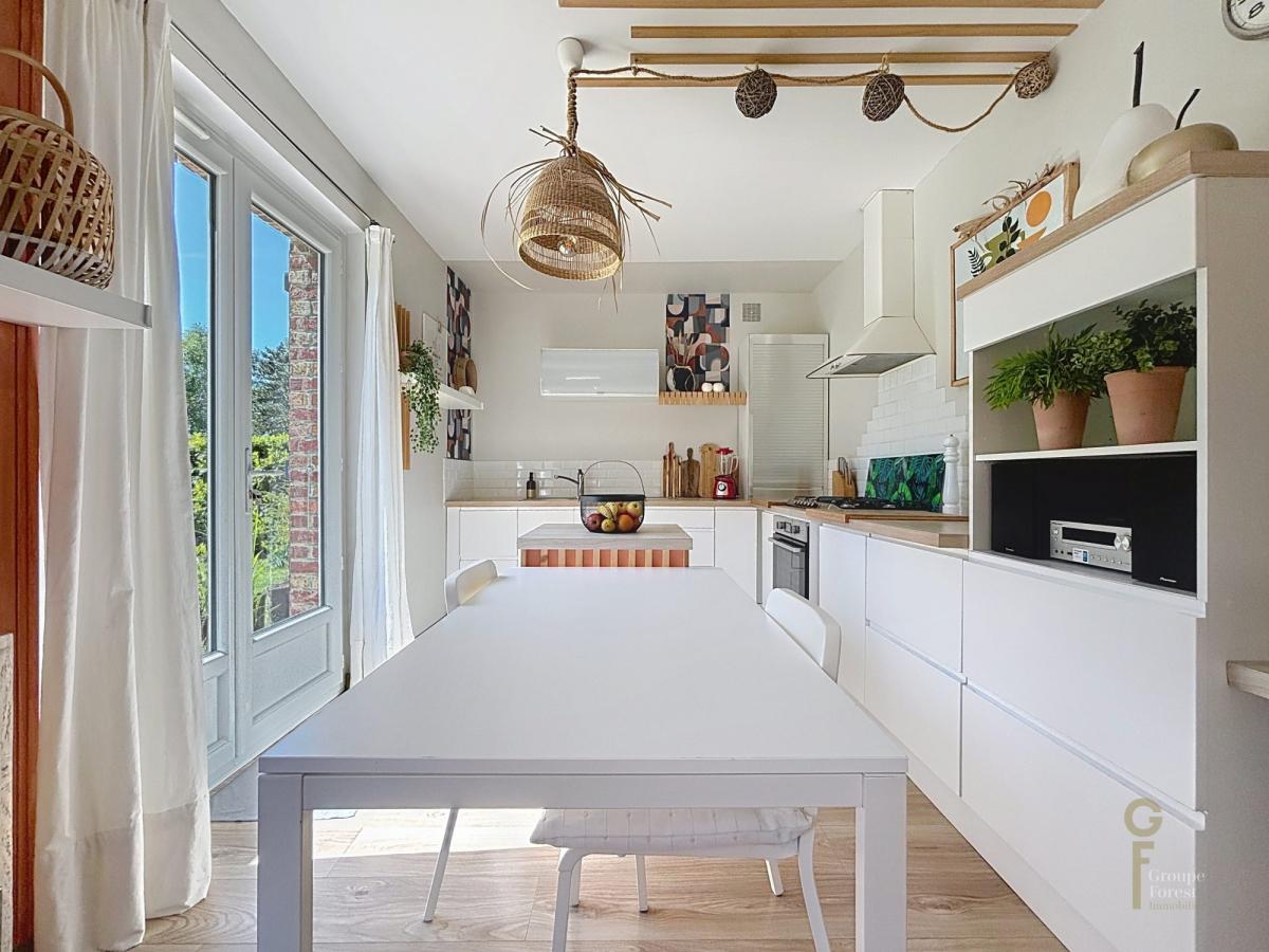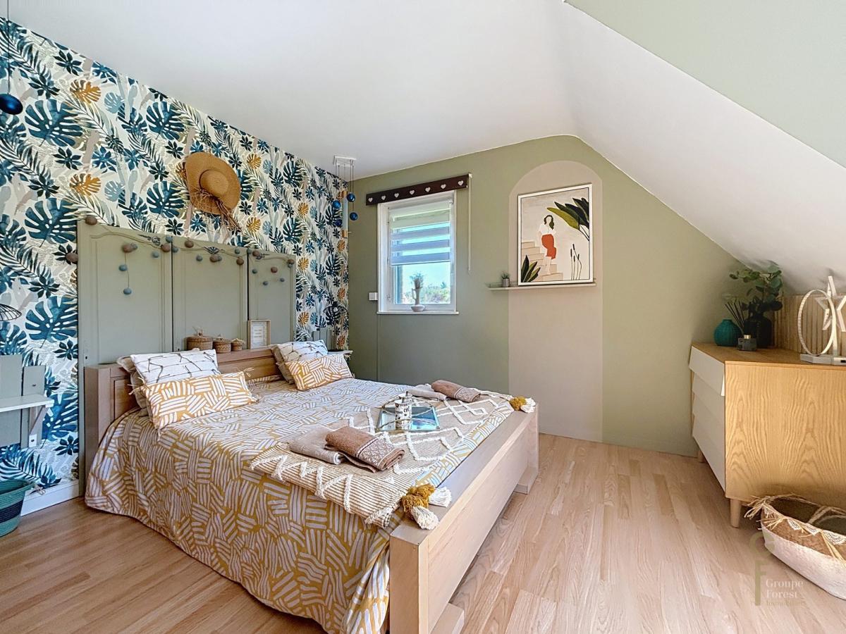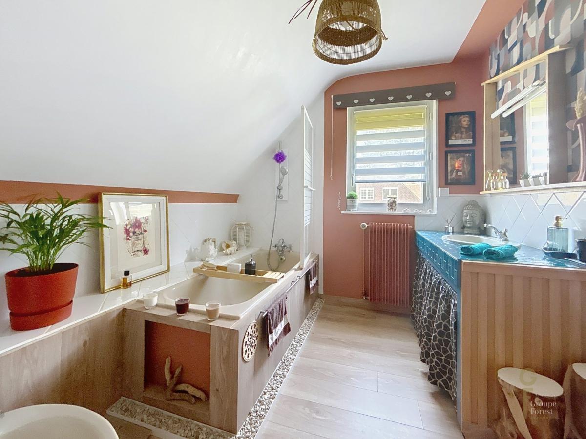 A l'étage, 4 chambres dont un coin parent avec salle de bain et placards, une salle de douche.