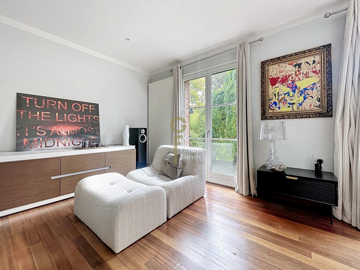 Le jardin paysager de près de 1 400 m², sans vis-à -vis, offre un cadre verdoyant rare et apaisant.Une grande terrasse orientée plein sud invite à la détente et aux repas en plein air.Un garage double ainsi qu’un stationnement privatif complètent ce bien d’exception.