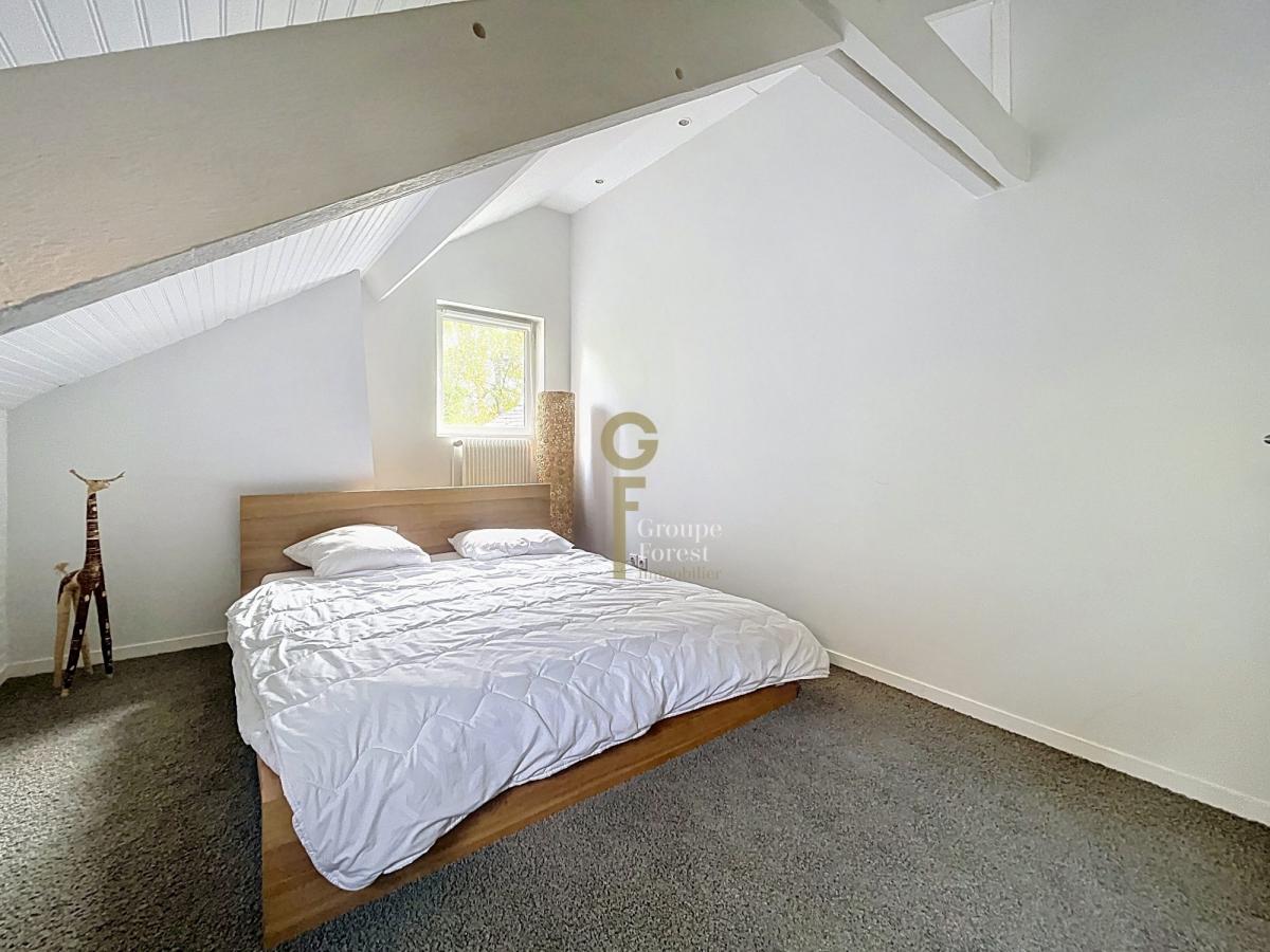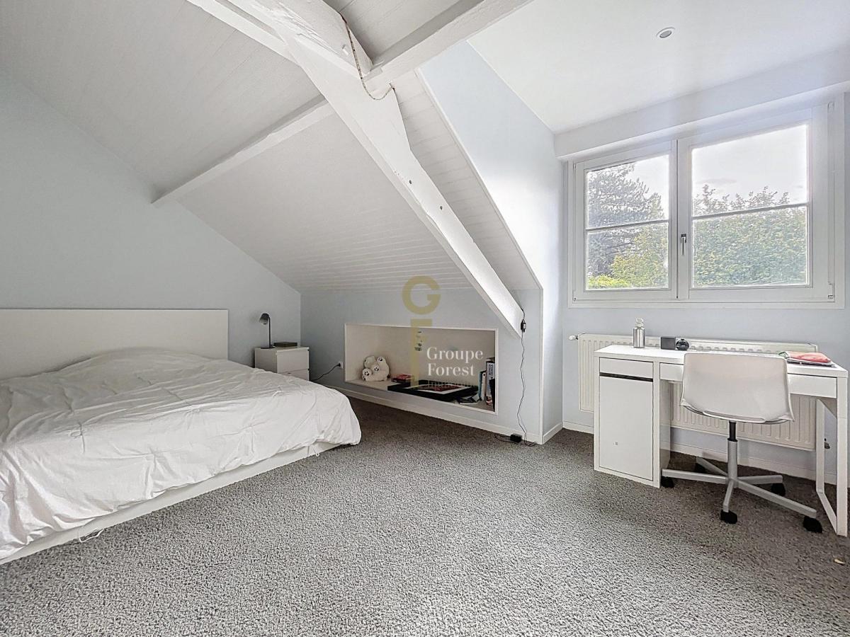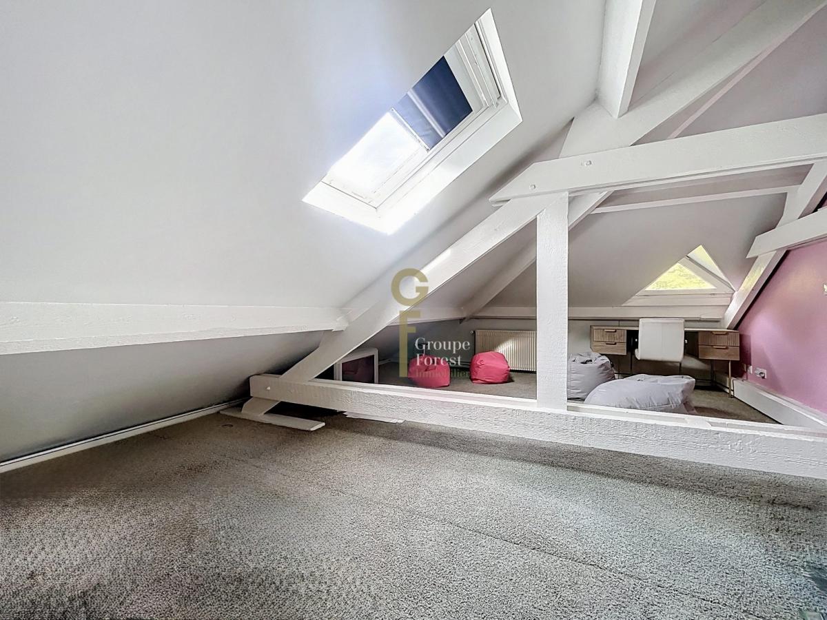 L’étage dessert trois chambres lumineuses, une salle de bains, un WC séparé, ainsi qu’un espace modulable idéal pour une salle de jeux, un bureau ou une cinquième chambre.Un bureau en mezzanine accessible par un escalier indépendant offre un espace de travail calme et lumineux, pouvant facilement être transformé en chambre d’appoint.