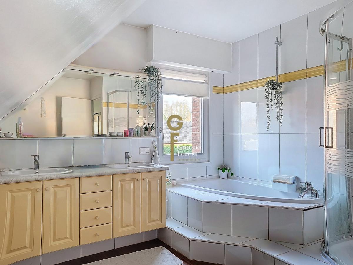 A l'étage, la distribution comprend trois chambres et une salle de bains, ainsi qu'une suite parentale avec salle de douche et dressing, pour un confort assuré.