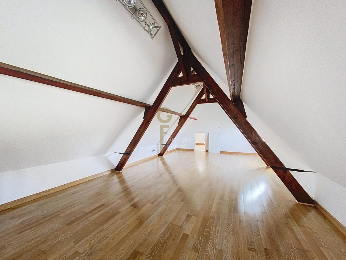 Le deuxième étage dévoile un comble aménagé avec poutres apparentes, offrant un espace principal modulable en chambre supplémentaire ou salle de jeux, ainsi que deux autres pièces similaire attenantes.