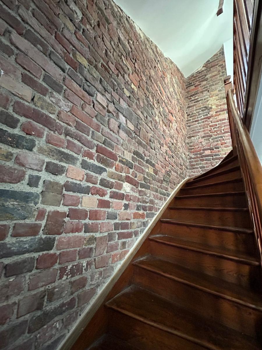 Au premier étage, vous trouverez 2 belles chambres avec parquet ancien, ainsi qu’une salle de bains avec WC.