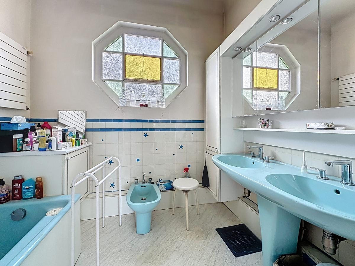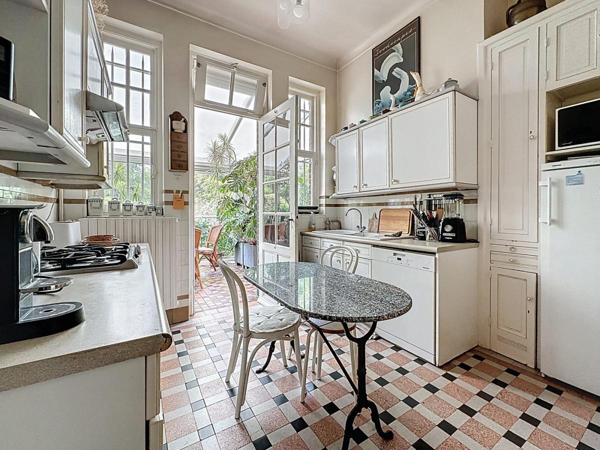 Le bel étage distribue un séjour de 32 m² avec cheminée, une salle à manger de 17 m², une cuisine de 10 m², et une véranda très lumineuse plein sud de 20 m² donnant sur le jardin, à l'étage un palier distribue 3 belles chambres (17 / 16.5 / 12 m²) et une salle de bain,
