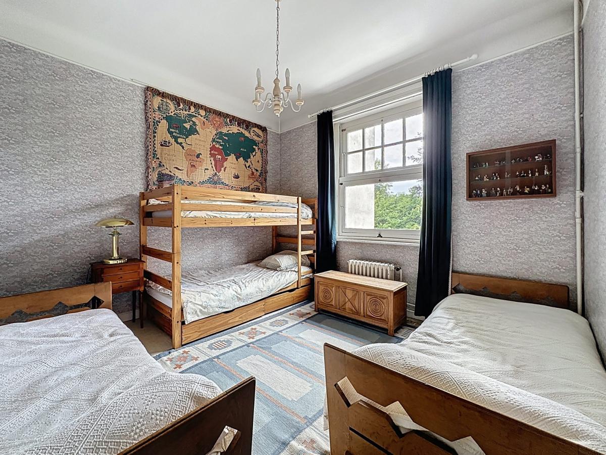 puis le dernier étage distribue 3 chambres (9 / 14 / 12 m²) un espace salle de jeux sur un palier ouvert de 18 m², et une salle de douche. En rez de jardin, garage pour 2 voitures en longueur, espace cave a vin, salle de jeux et buanderie.