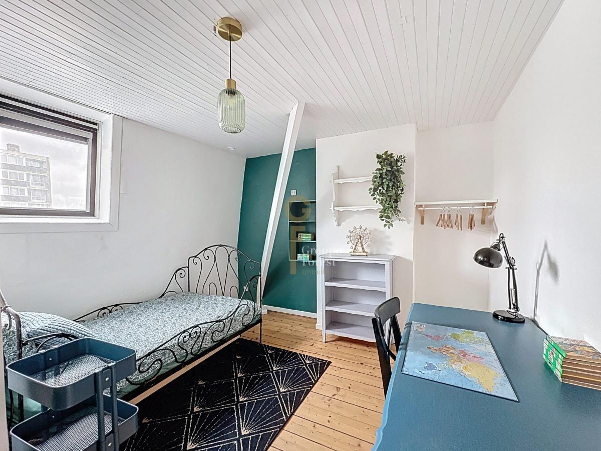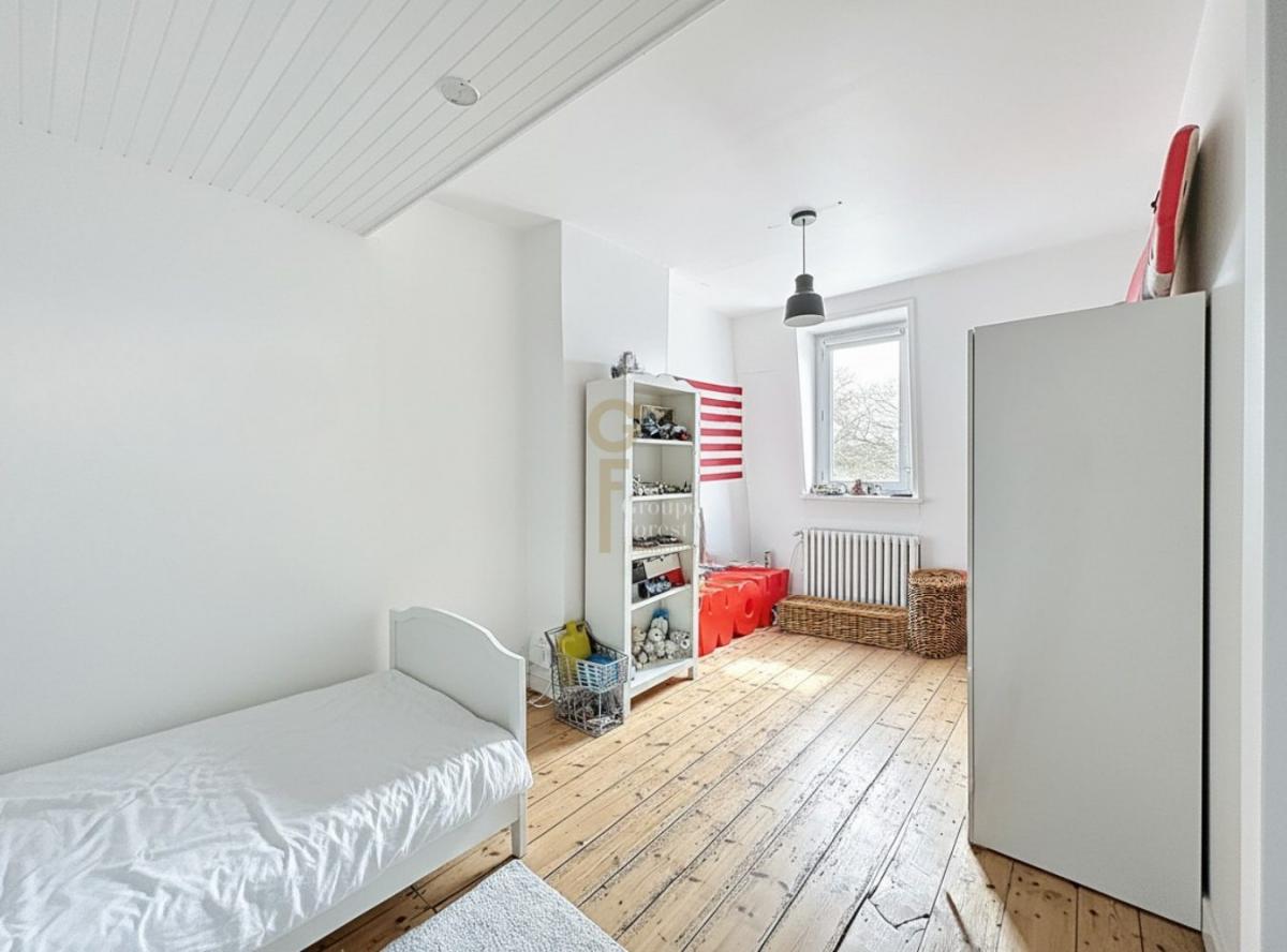 Le premier étage accueille l’espace nuit principal, aujourd’hui composé de plusieurs chambres dont une vaste suite parentale de 27 m² issue de la réunion de deux pièces, facilement reconfigurable pour créer une chambre supplémentaire selon les besoins, et disposant d’un grand balcon sur rue. Une autre chambre de 15 m² ainsi qu’une belle salle de bain avec bain et douche complètent ce niveau. Chaque étage dispose de son propre ballon d’eau chaude, garantissant un confort optimal pour toute la famille.