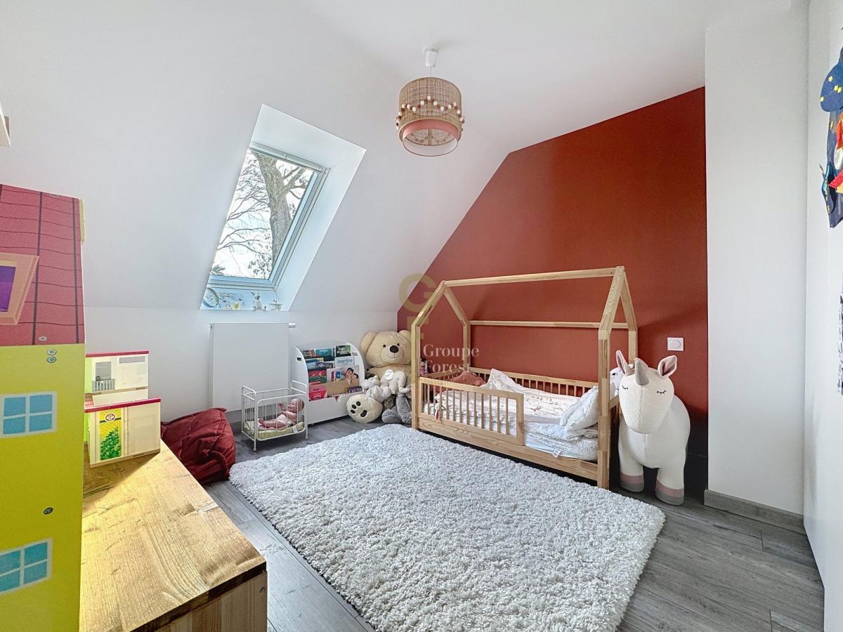 L’entrée s’ouvre sur un hall accueillant avec vestiaire et toilettes indépendantes, distribuant harmonieusement les espaces de vie. Le salon-séjour de 27m², baigné de lumière grâce à une large baie vitrée et une porte fenêtre. La cuisine de 19m², entièrement aménagée et équipée, intègre un espace repas fonctionnel et chaleureux, un cellier avec lingerie. En complément du rez-de-chaussée, une chambre ou un bureau avec un point d'eau et un accès autonome. Offrant un beau potentiel d'agrandissement en suite parentale.