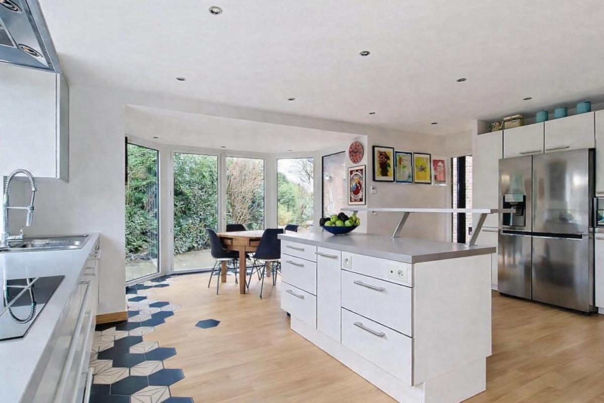 Une très belle cuisine indépendante, Poggenpohl, soigneusement aménagée, s’intègre harmonieusement, un espace de vie très claire.Deux escaliers distincts, desservent l'étage, 4 belles chambres et deux salles de bain permettant une circulation fluide.