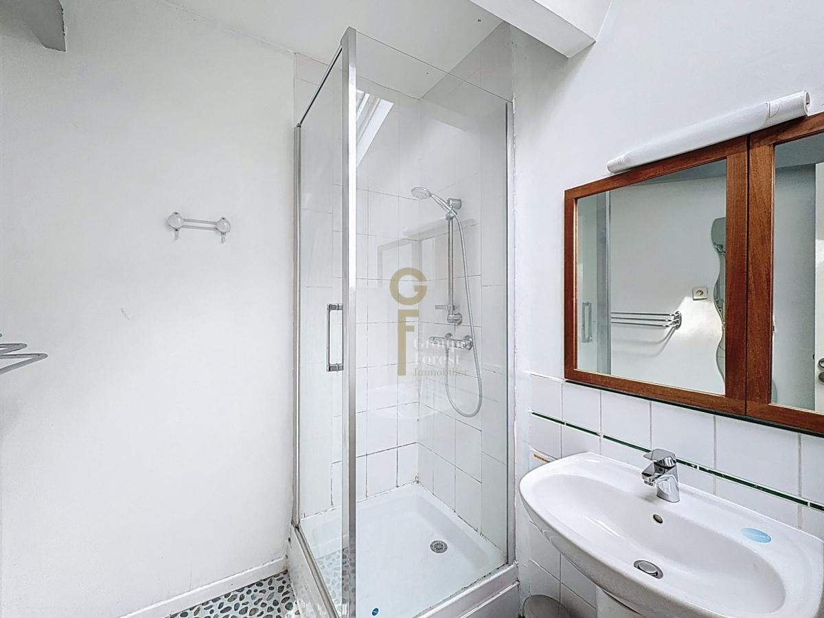 Un espace nuit indépendant, également tourné vers le jardin, offre une chambre calme avec sa salle de bain privative – idéal pour une suite parentale ou pour recevoir.