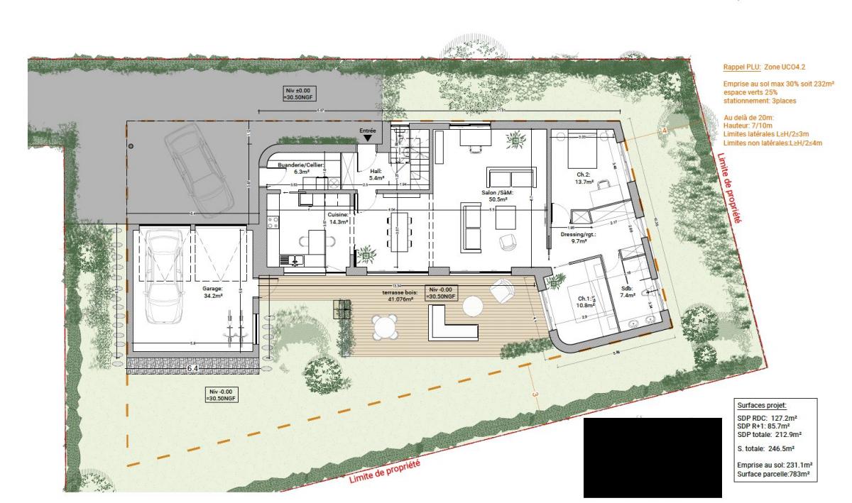 Permis : Le permis de construire pour une maison cubique en semi plain-pied a été accepté, vous épargnant ainsi les tracas administratifs et vous permettant de passer à l'étape suivante de votre projet en toute sérénité.